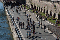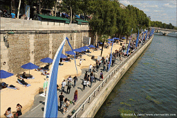 Bereits seit 2002 fand jedes Jahr "Paris Plage" (Paris-Strand) auf der im August gesperrten Uferbegleitstraße entlang der Seine statt, mit Liegewiesen, Gastgärten, Spielplätzen und anderen Aktivitäten (Design: Jean-Christophe Choblet). Die Anlage dieseser Straße war 1967 ein furchtbarer Sündenfall: die romantischen Kais an der Seine wurden dem Autoverkehr geopfert. Die sommerliche Sperre machte Lust auf mehr, und da auch oberhalb der Uferbegleitstraßen breite Bolevards entlang der Seine verlaufen, schien die Sperre machbar.