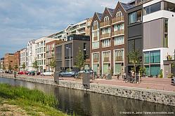 Bei uns sind es die Brownfields ehemaliger Bahnhöfe; in den Küstenregionen bieten aufgelassene Häfen Entwicklungsmöglichkeiten. Die Schiffe wurden zu groß, heute werden sie in gigantischen Containerterminals entladen, zurück blieben attraktive Standorte am Wasser. Der alte Holzhafen von Amsterdam liegt nördlich der Innenstadt, nur 10-15 Minuten per Fahrrad vom Hauptbahnhof entfernt.